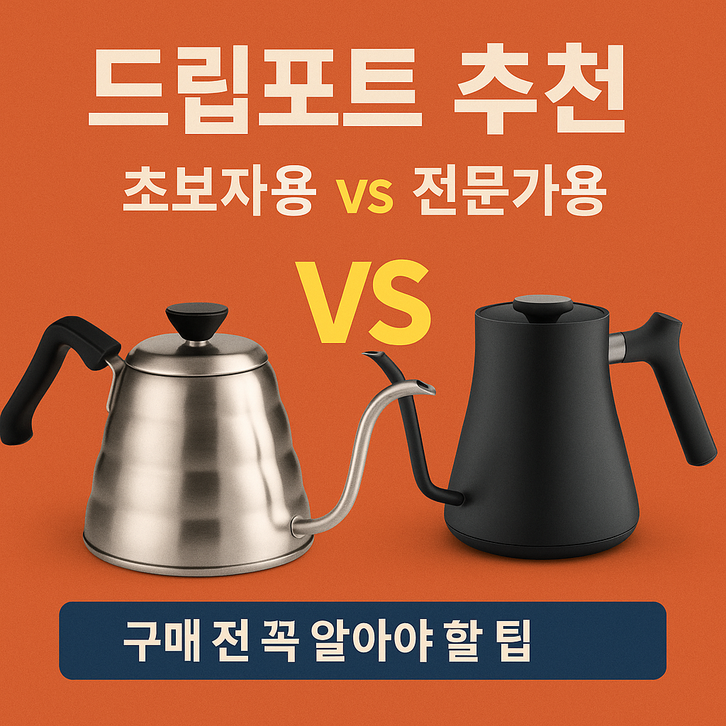 드립 커피의 향미를 좌우하는 핵심 도구, 바로 드립포트입니다. 처음 시작하는 분과 숙련된 커피 애호가에게 적합한 드립포트는 어떻게 다를까요? 이 글에서 초보자용 vs 전문가용 드립포트의 차이를 확실히 알려드립니다.